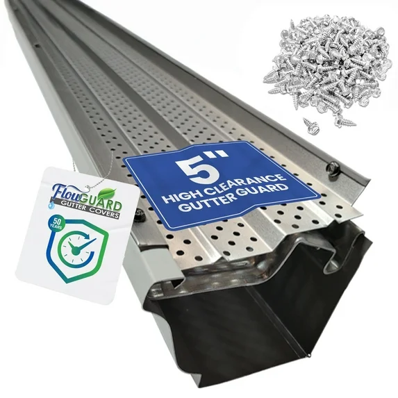 Made from heavy duty aluminum, this panel style guard is both sturdy and long lasting. The perforated surface filters out debris while supporting strong water flow during storms. Its smooth top allows leaves to slide off rather than accumulate. This option is well suited for homeowners who want a clean and simple guard that is easy to work with.