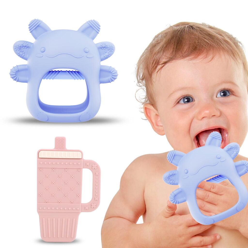 A teething mitt gives babies something safe to chew on as their gums grow sensitive. The textures help reduce discomfort and keep their hands busy. It stays securely on their hand, making it easier than holding a toy. Parents like that it keeps babies from chewing on random items.