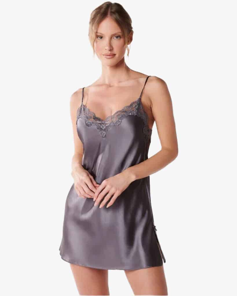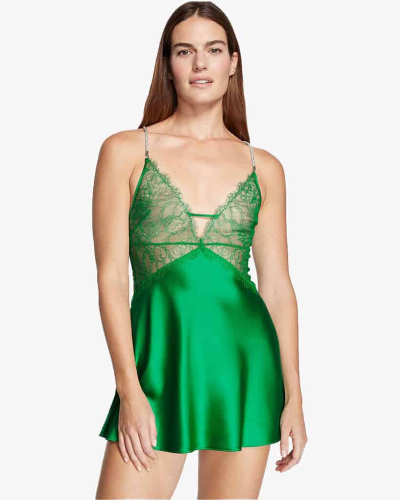 This slip dress from Victoria’s Secret has a plunging v-neckline to flatter your chest and add a seductive side to your lingerie. Its lace paneling and flared hem will emphasize your figure and make you look and feel fabulous! The straps are in glittering crystals for a dazzling finish.