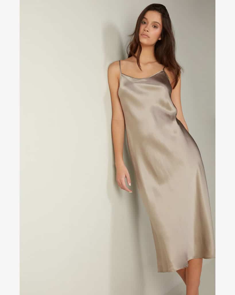 This satin number will leave you feeling comfortable yet irresistible, slipped under your favorite dress. It has been made from 100% recycled polyester, and it is available in various on-trend colors to suit your mood and your outfit.