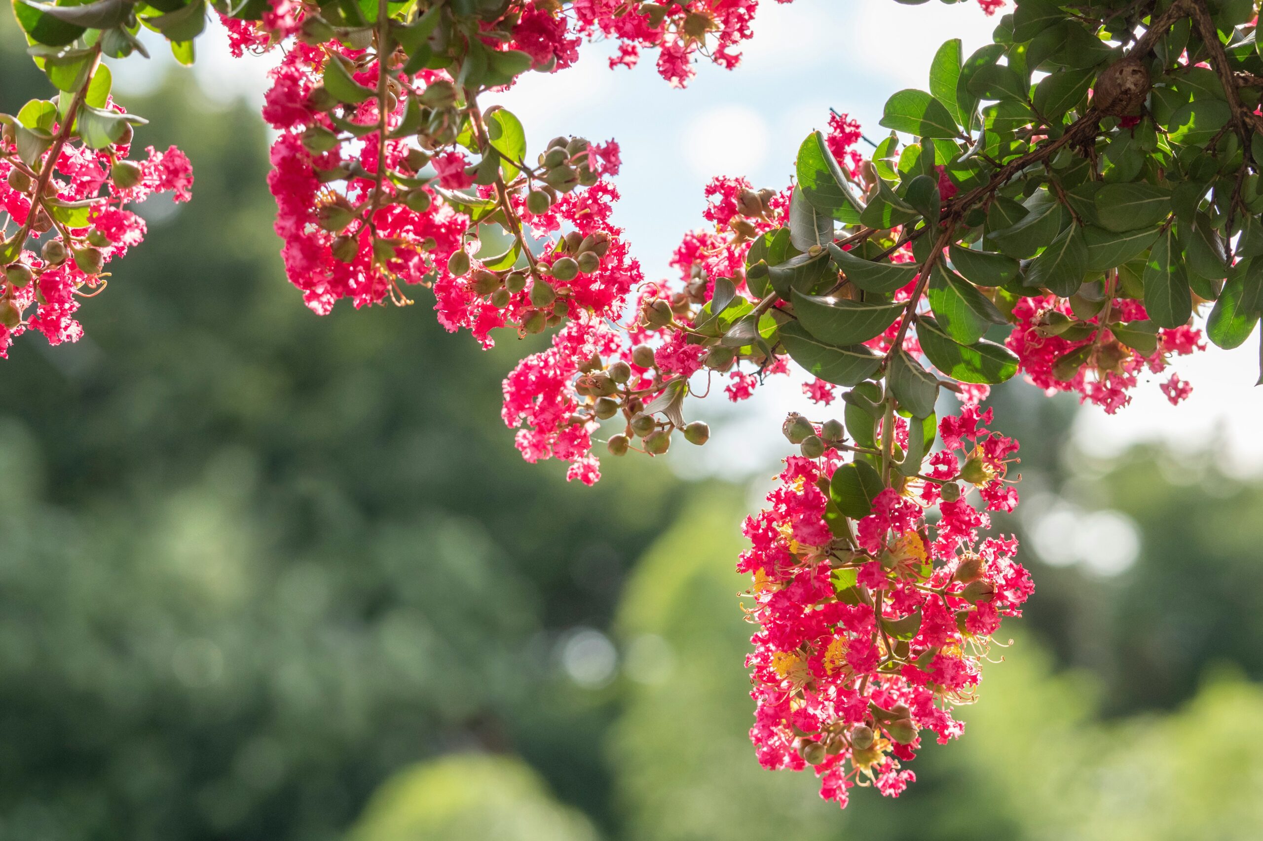 Crape Myrtles offer beautiful summer blooms and striking bark. They thrive in full sun and can tolerate a variety of soil types. Regular watering during the growing season is recommended.