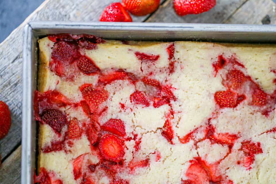 This cobbler is a comforting dessert with a sweet biscuit topping over juicy strawberries.