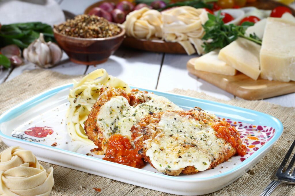 This traditional dish combines tender chicken with a creamy Alfredo sauce.