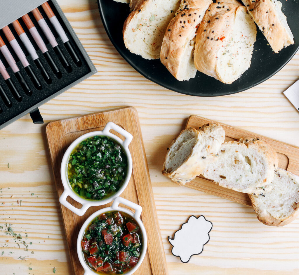 Preparation: Combine finely chopped parsley and garlic in a bowl. Add red wine vinegar, olive oil, oregano, red pepper flakes, salt, and pepper. Mix well and let the flavors meld before serving.