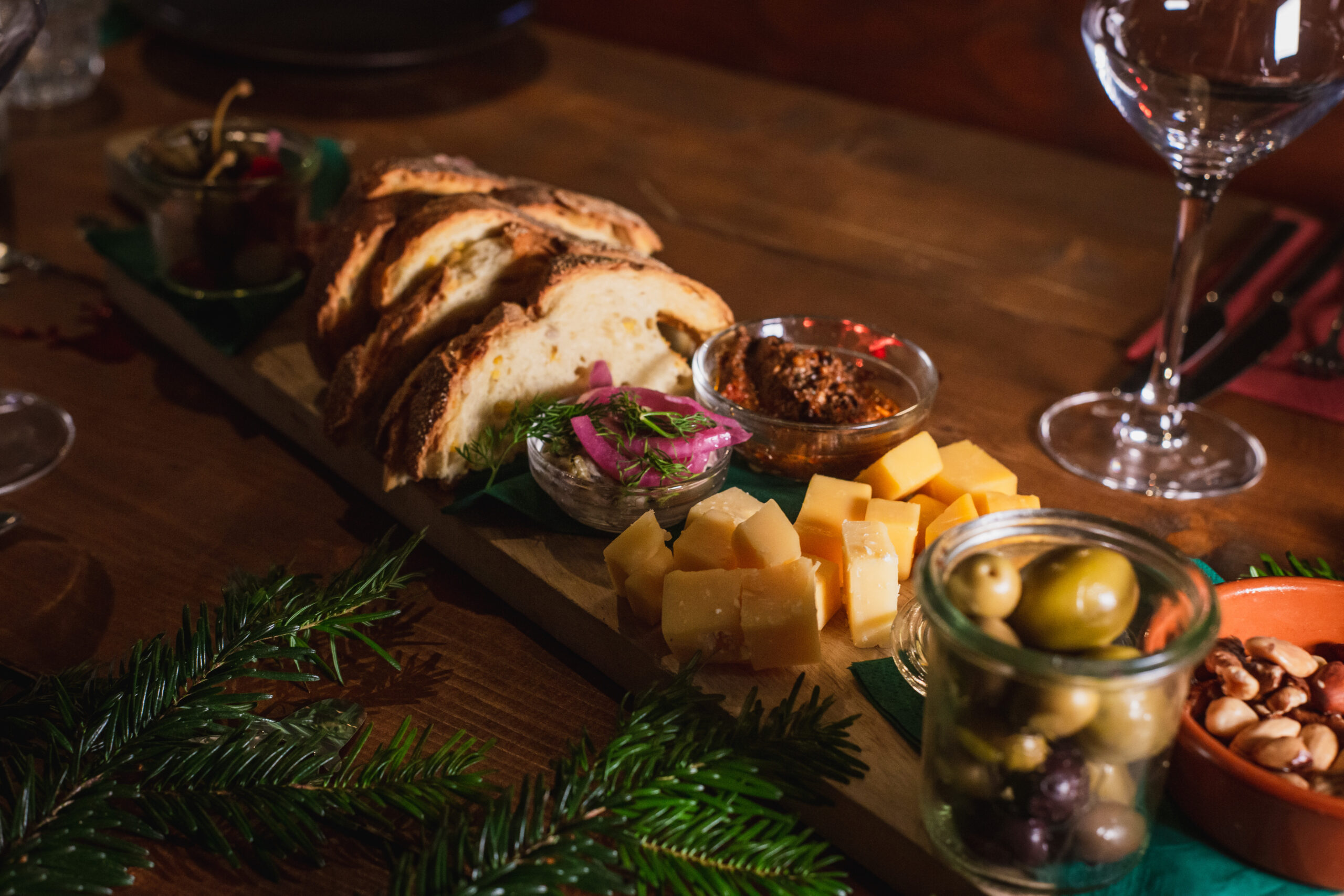 Arrange a selection of cheeses, nuts, and fruits for an easy yet elegant display.