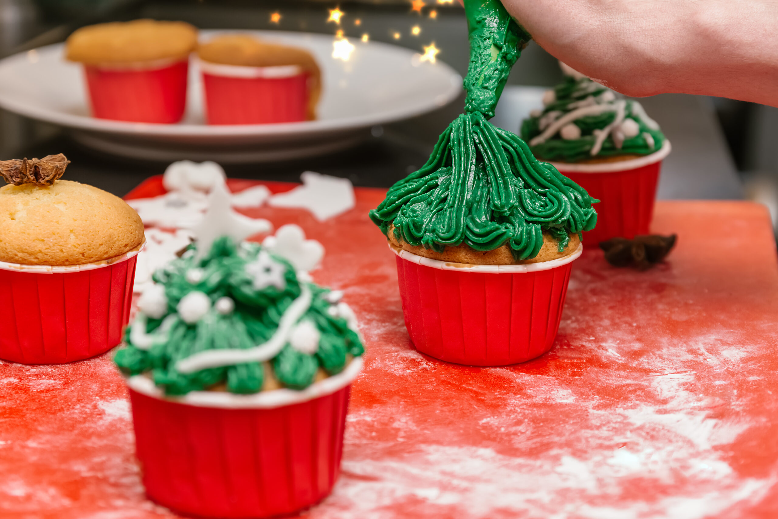 One of the most iconic holiday designs is the Christmas tree cupcake. Follow these steps to create this festive decoration: