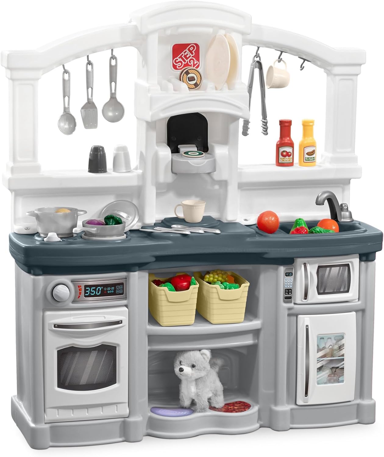 A child-sized play kitchen with buttons, doors, and pretend appliances lets her “cook” just like the grown-ups. She can mix, stir, and serve pretend meals to family members or stuffed animals. This type of play builds social skills, language, and confidence as she narrates what she’s doing. It quickly becomes a favorite spot for everyday pretend play.