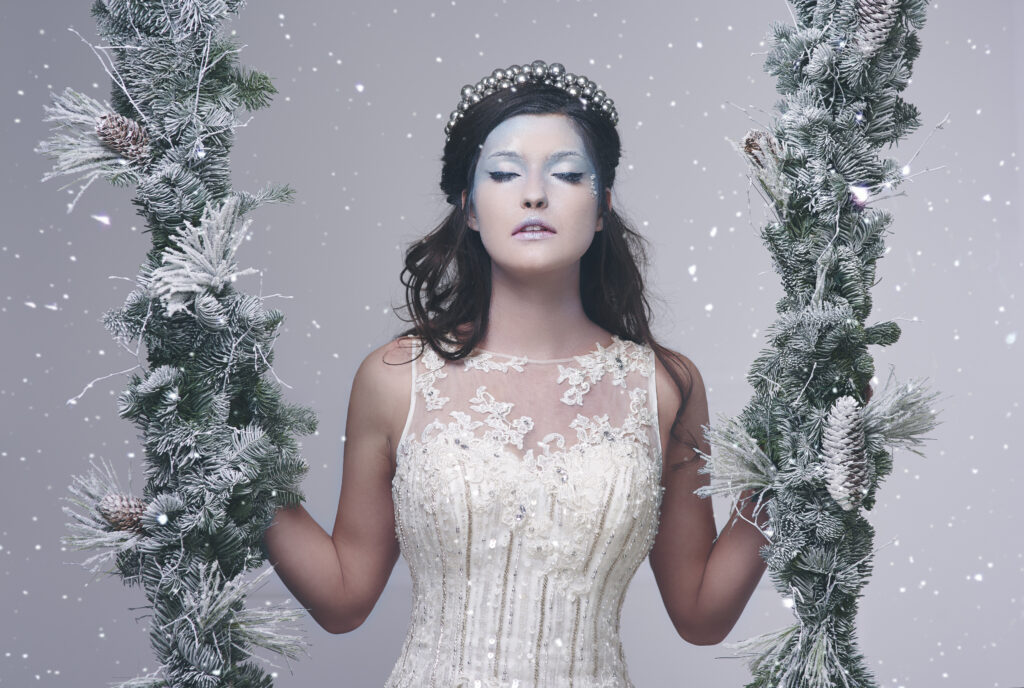 Guests dress in white, silver, or cozy winter wear. Soft lighting and cool toned décor complete the look. This theme suits holiday season events.