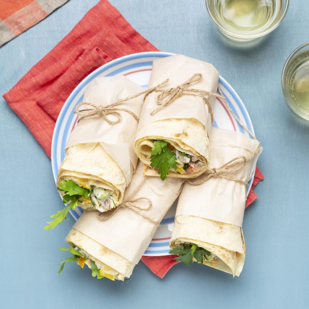 Carefully fold the edges of the tortilla over the fillings to form a burrito.