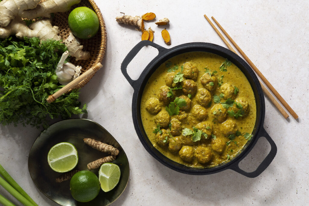 This vegetarian option is full of flavors and nutrients, with a variety of colorful vegetables simmered in a mild curry sauce.