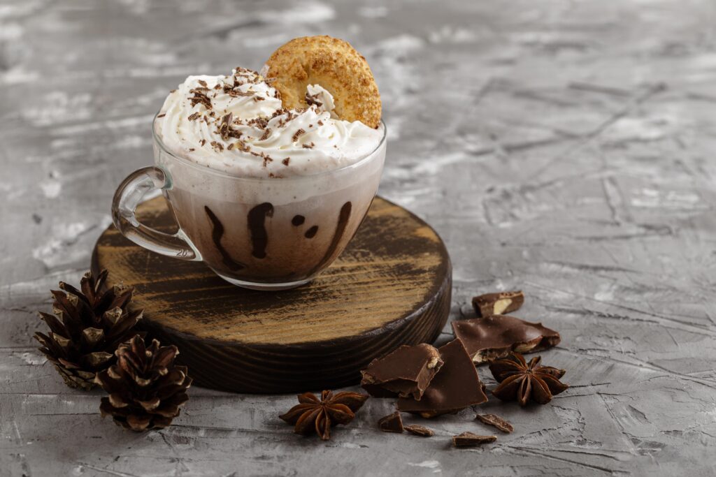 A creamy blend of white chocolate, milk, and crushed peppermint, this drink offers a sweet, cooling twist on the classic hot chocolate. The peppermint gives it a refreshing lift that feels festive and bright. It’s luxurious and smooth, perfect for evenings by the Christmas tree. This drink also pairs beautifully with holiday cookies.