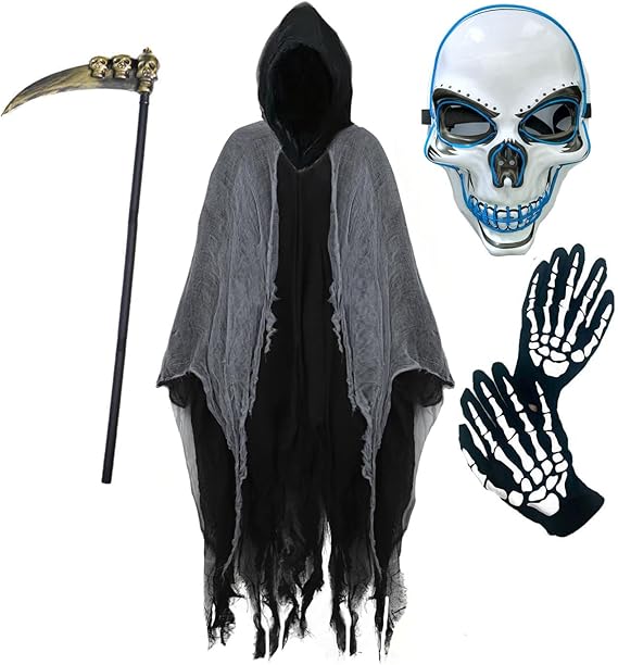 A Grim Reaper costume is a Halloween classic that perfectly captures eerie mystery and spine-chilling presence. With its flowing black robe, shadowy hood, and skeletal accents, it creates the ultimate embodiment of death’s messenger. Adding a scythe completes the iconic look, making it instantly recognizable and terrifyingly fun.