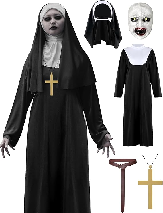 Turn heads and stir chills at your Halloween party with a spooky nun costume that’s anything but holy. With its eerie black-and-white habit and haunting vibe, this outfit transforms an innocent look into something straight out of a horror movie. Perfect for parties, haunted houses, or late-night scares, it guarantees you’ll be the most unforgettable and terrifying guest of the night.