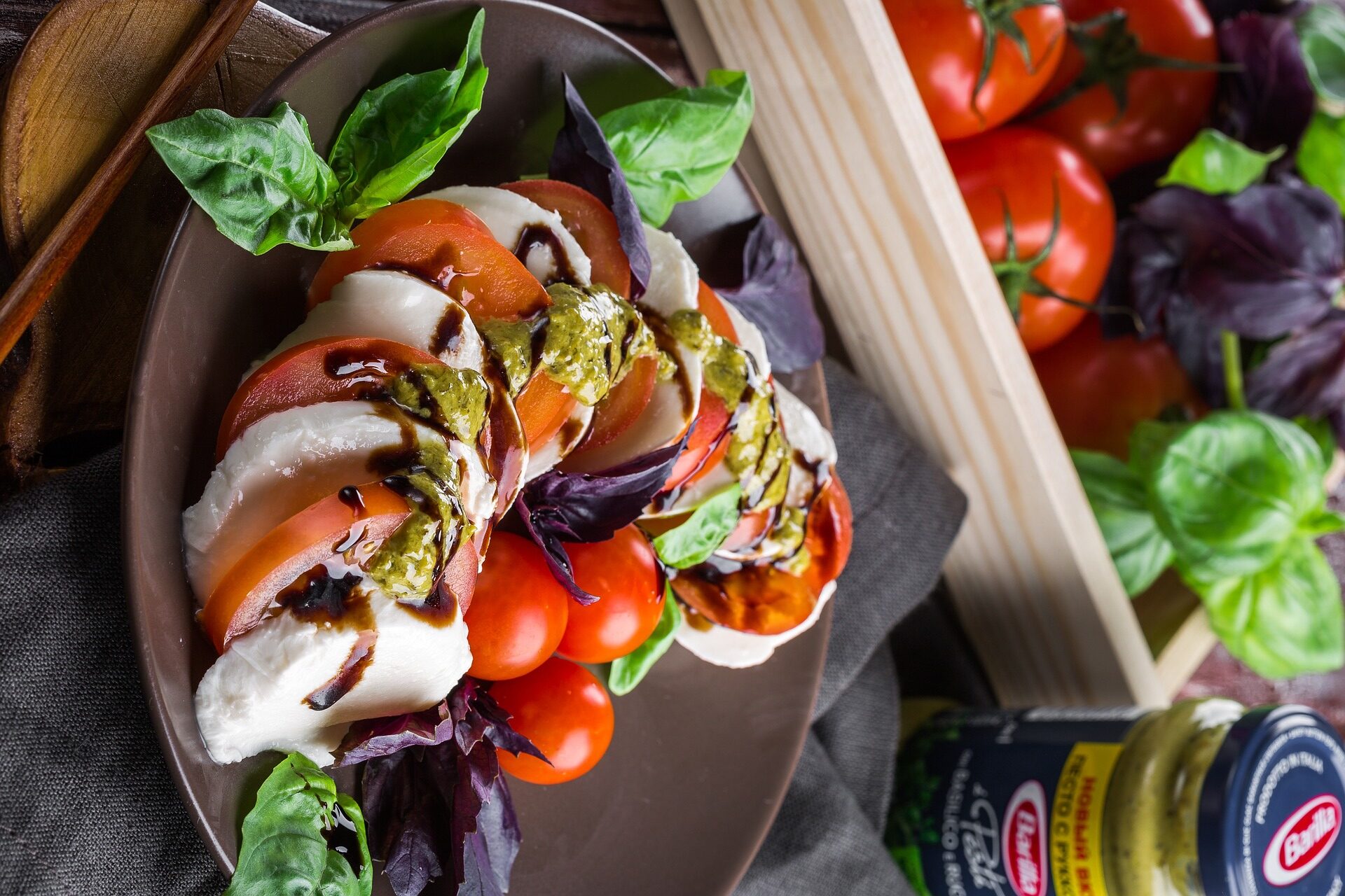 A simple yet elegant salad that highlights the classic combination of tomatoes, mozzarella, and basil.