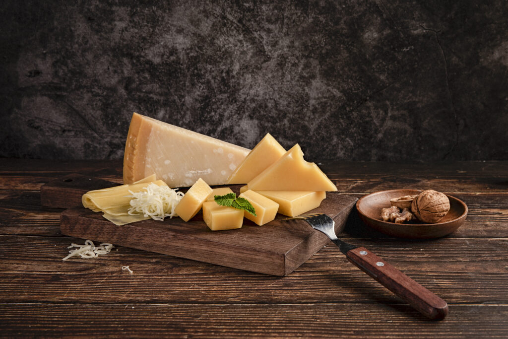 Known in Italy as Parmigiano-Reggiano, this hard cheese is aged for at least a year to develop its signature sharp, savory flavor. Made from cow’s milk and produced mainly in northern Italy, Parmesan is often grated over pasta, risotto, or soups to enhance flavor. Its crumbly texture and rich umami taste make it a chef’s favorite for finishing dishes. Don’t toss the rind — it can be simmered in soups to deepen the flavor even more.